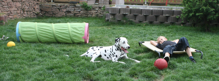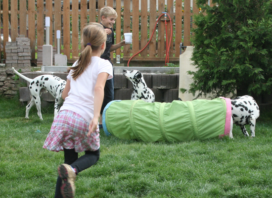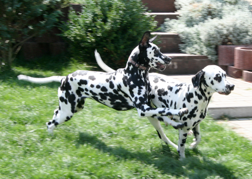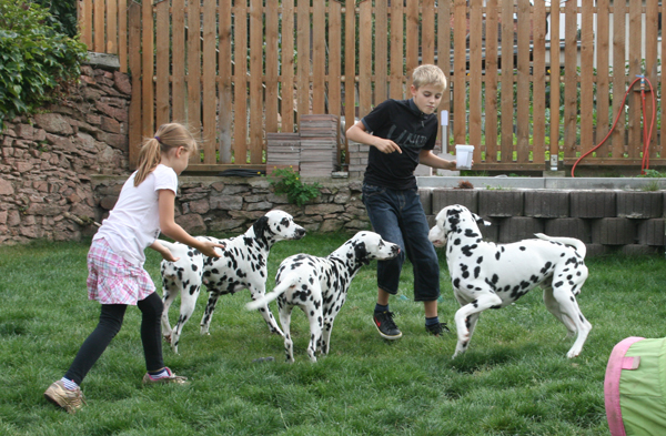 stürmt mit Milly durch den Garten