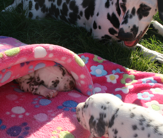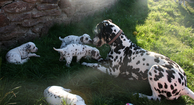 fühlen sich wohl zwischen Milly's Welpen