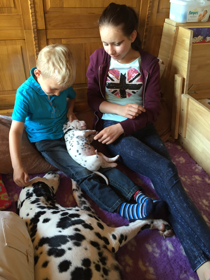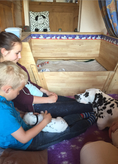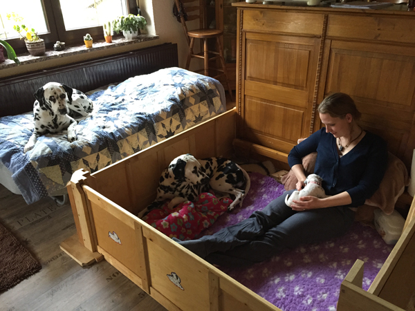 Abby mit ihren Vieren und dem kleinen Schweinehund