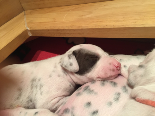 schlafen. Betty Lou weicht ihren zwergen nicht von der Seite und putzt und