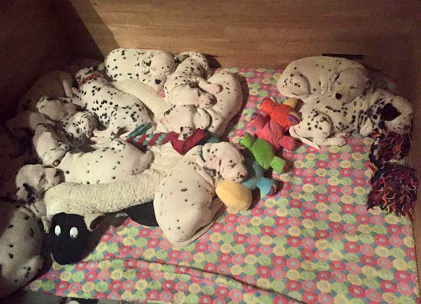 12 kleine Dalmiwelpen werden