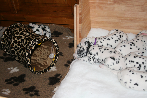 Wachphasen werden immer länger. Es wird miteinander gespielt und gerauft.