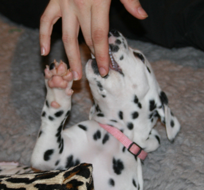 Anouk zeigt wie gut ihre Zähnchen sind..