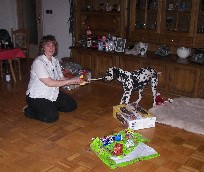 Schwester Gipsy packt ihr Geschenk schon aus - sie hat da schon Übung