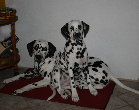 (18,5 Monate) und rechts von ihr, Celly - Halbschwester (14,5 Monate)
