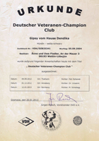 Jetzt erhielten wir nun die Urkunde für unseren 1. Deutschen Veteranen Champion Club - für unsere Gipsy vom Hause Dendika. Wir sind sehr stolz auf unsere Maus ! (bei KLICK auf das Bild öffnet sich eine Vergrößerung)