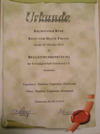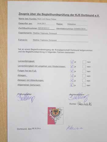 Bestnoten, die Begleithundeprüfung in der Kreisjägerschaft in Dortmund