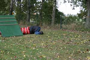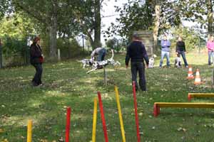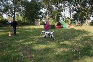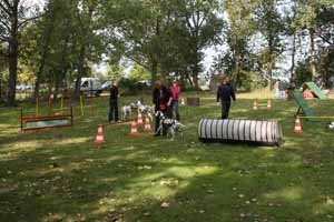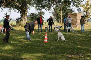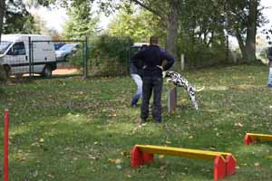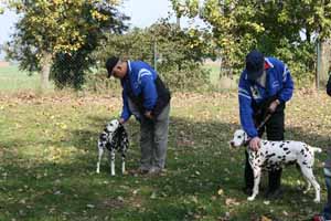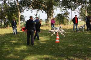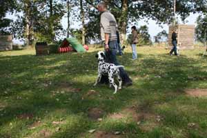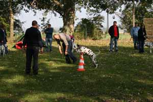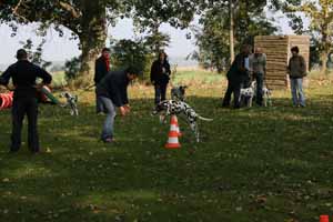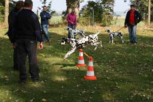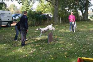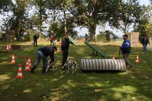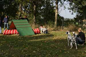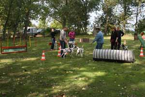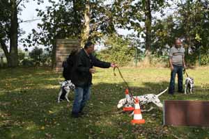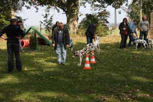 weil Frauchen und Herrchen nicht zur gleichen Zeit mit 2 Dalmis über die Hindernisse kamen haben netterweise die Hundefreunde aus Krosigk den jeweil wartenden Hund Gesellschaft geleistet, oder haben abwechselnd sogar mitgemacht.