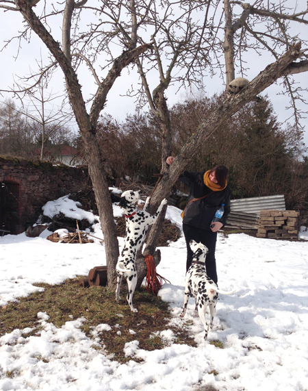 ob Milly auf dem Baum was findet? Abby geniest etwas Sonne.