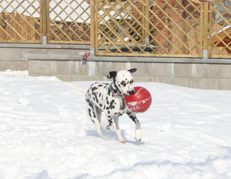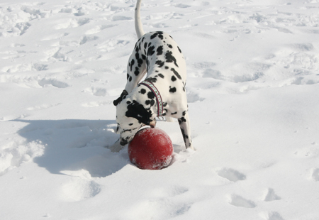 Milly spielt zu gern mit diesem Ball - immer wieder hin und her