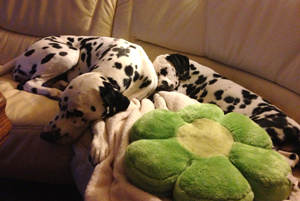gut. Sie schläft und kuschelt viel - auch mit unserer Basima und sucht