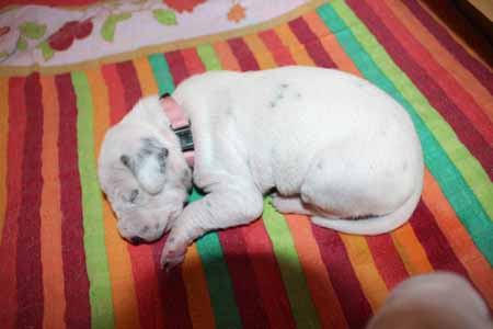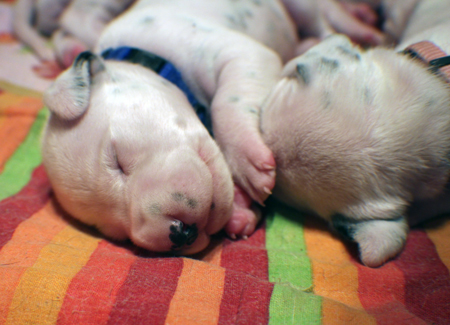 alle 4 wie aus dem Ei gepellt in der Wurfkiste liegen und wieder schlafen.