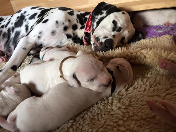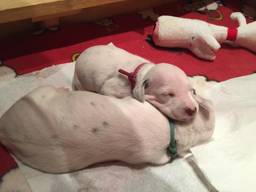 schlafen. Betty Lou weicht ihren zwergen nicht von der Seite und putzt und