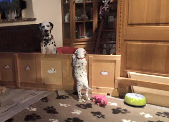 brauchen sie etwas Hilfe um durch die Klappe zu kommen, aber bald schaffen sie