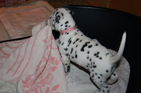 Abby schläft gern auf dem Rücken