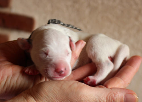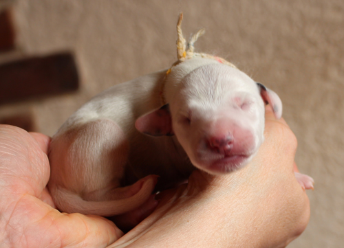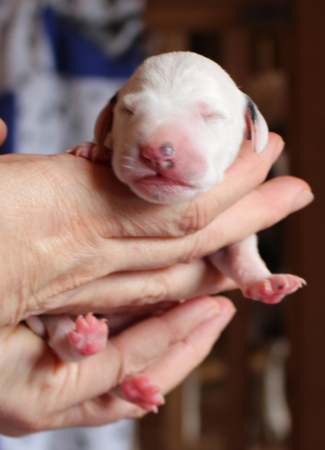 der Erstgeborene - ein weiss-schwarzer Rüde - blaues